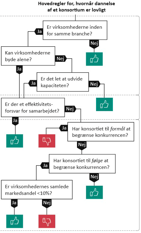 Nedenståene figur viser Konkurrencestyrelsens rutediagram for Konsortiedannelser, som fortsat skulle være gældende vejledning.